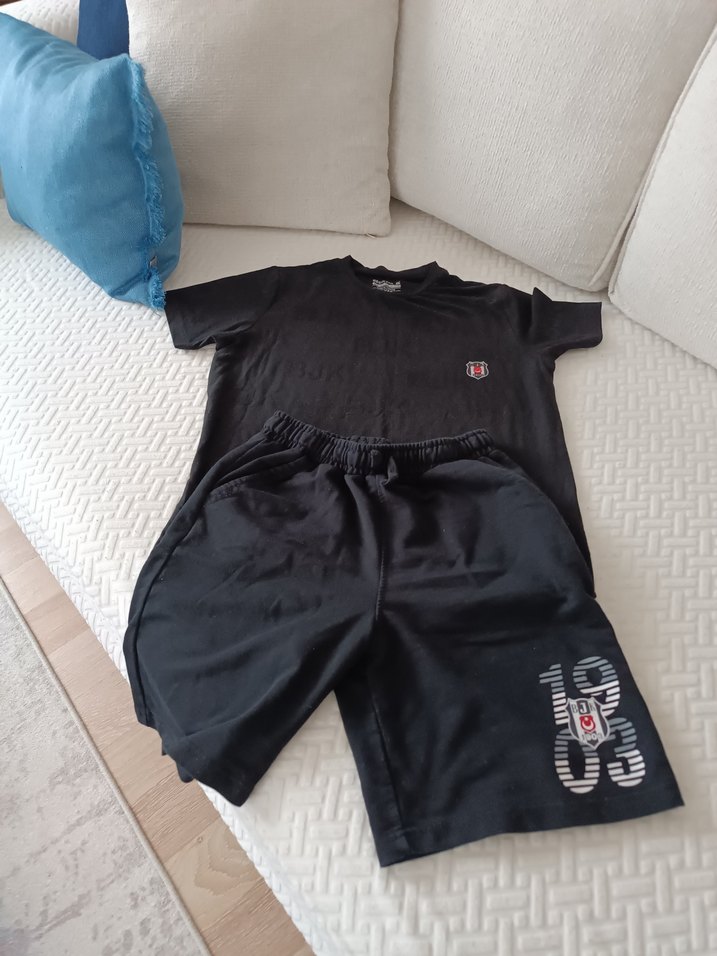 Erkek Siyah Pamuklu Rahat Kesim Şortve tshirt