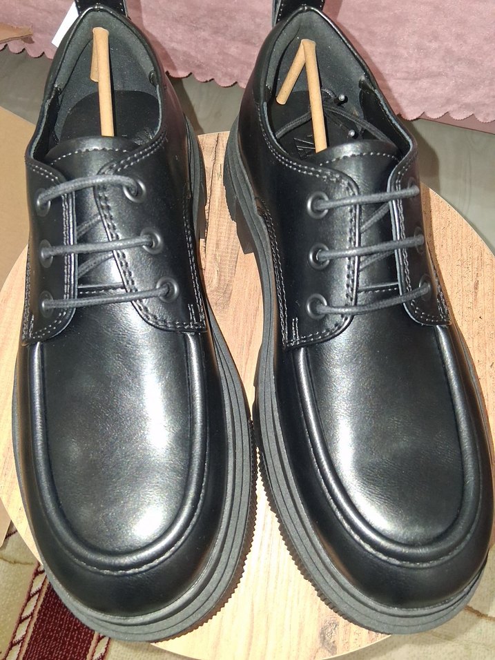 Erkek siyah parlak klasik ofis ayakkabısı, kauçuk tabanlı ve tokalı, zamansız gotik stile sahiptir.