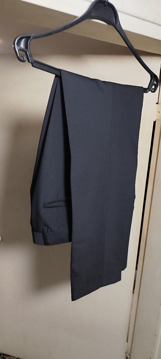 Erkekler için siyah, pilili, normal boyda ve regular fit ofis pantolonu, sentetik kumaştan üretilmiştir. Düz ve desensiz tasarıma sahiptir.