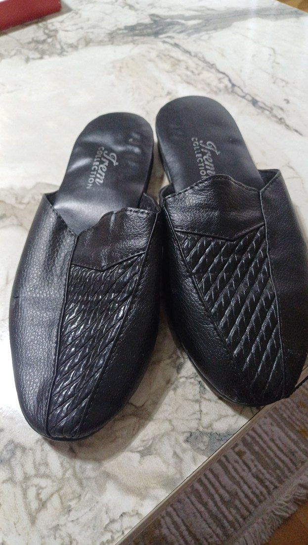 Erkekler için koyu siyah renkli, pliseli tasarıma sahip klasik ve desen içermeyen ev terliği. Rahat kullanım sağlar.