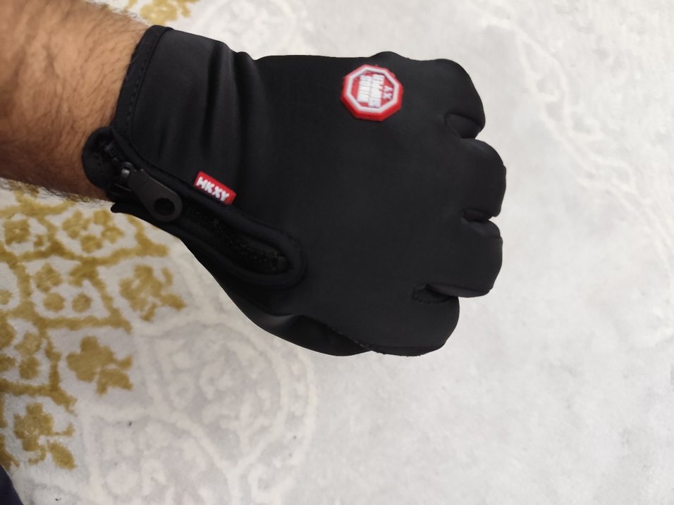Renkli baskılı detaylara sahip siyah biker eldiven, rock punk havası ve athleisure tarzı için uygun.