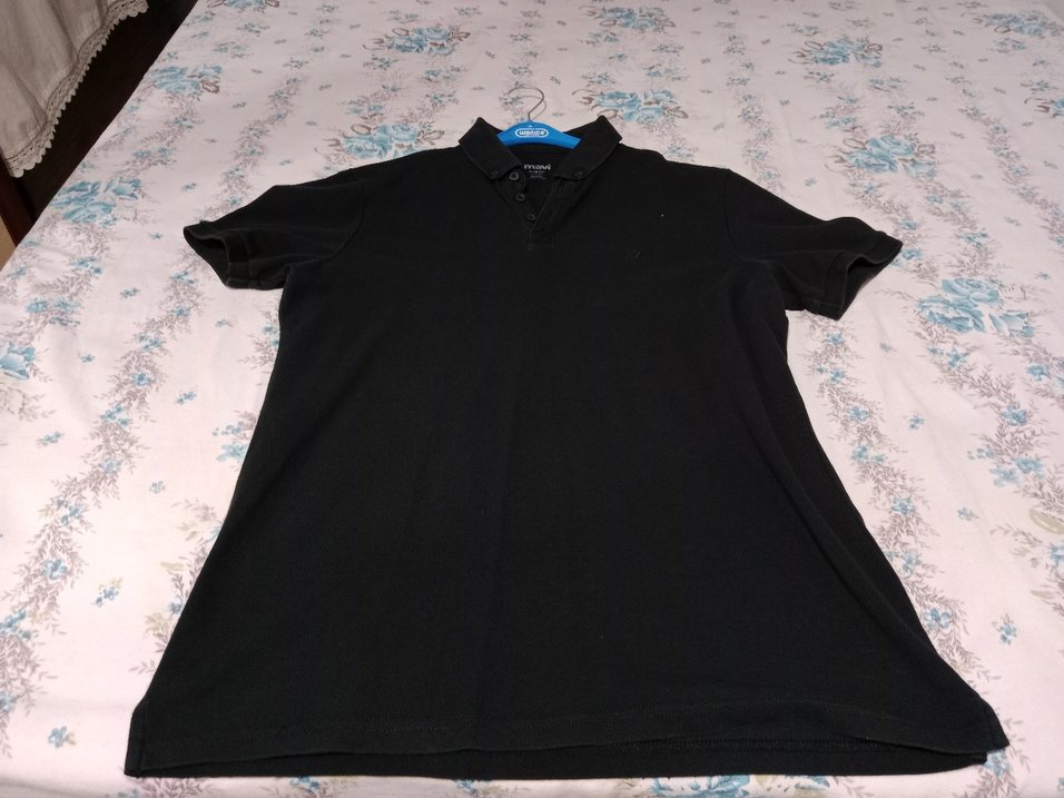 Siyah renk erkek polo yaka kısa kollu tişört, düğmeli ve bol kesim. Günlük kullanıma uygun, sentetik kumaştan üretilmiştir.