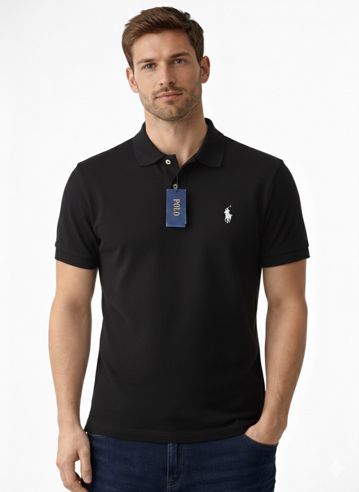 Erkekler için siyah polo yaka, kısa kollu ve normal kesim tişört. Yumuşak ve sıcak kumaştan üretilmiş, spor ve gündelik şıklık sunar. ️♂️ S/M bedenleri mevcuttur