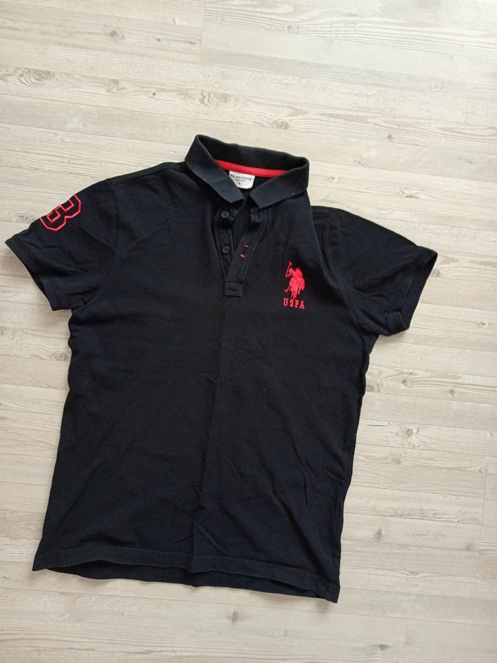 Siyah renkli, kısa kollu, düğmeli ön cephe ve baskılı detaylara sahip erkek polo yaka tişört. Sentetik kumaştan üretilmiş, günlük kullanıma uygun.