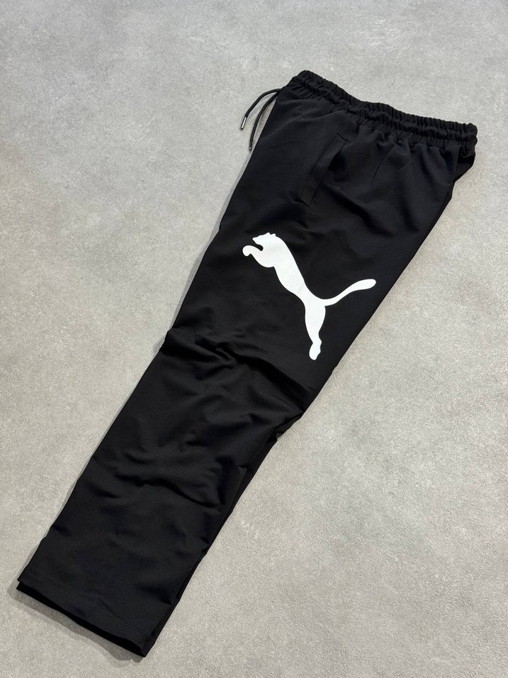 Siyah renkli, bol kesim ve elastik bel bantlı erkek eşofman altı. Beyaz Puma logosu ve yumuşak kumaşıyla spor ve günlük kullanıma uygun. ♂️