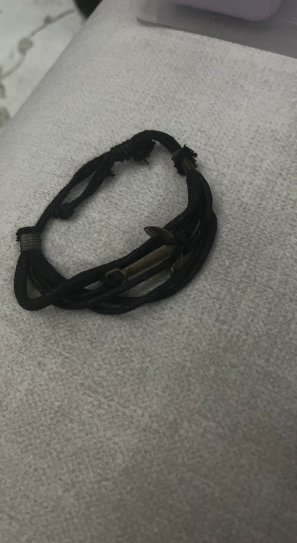 Çoklu siyah iplerden ve metal detaylardan oluşan, grunge punk havası taşıyan erkek bilekliği.