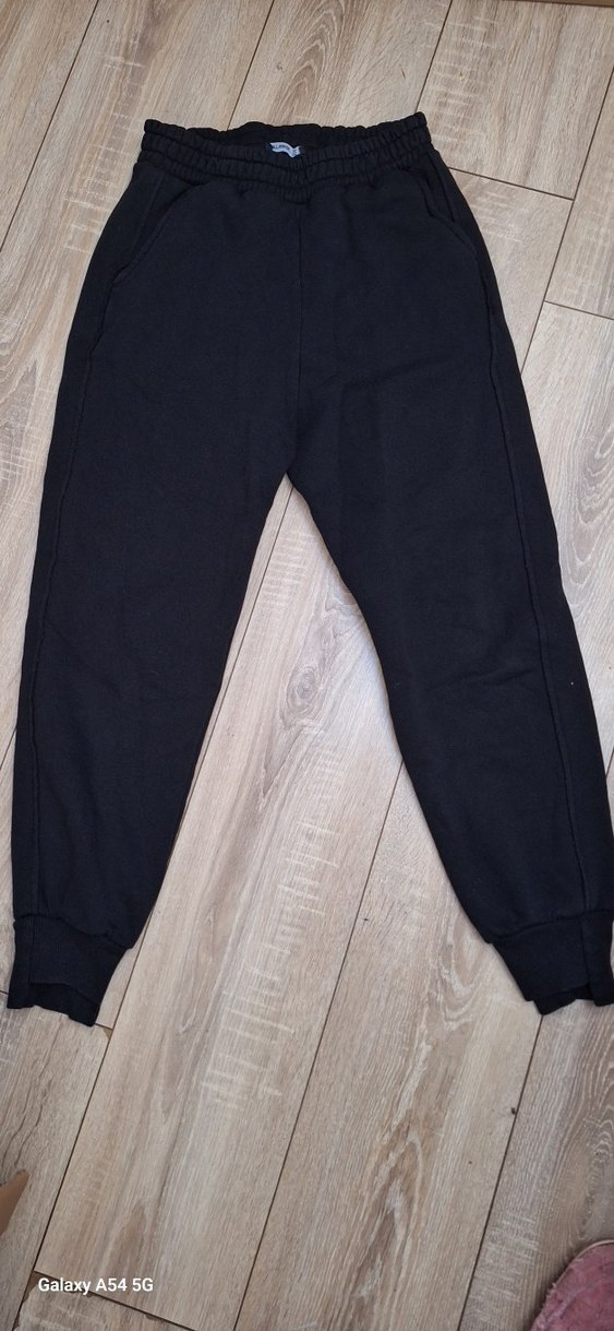 Erkekler için siyah, rahat kesim ve ribanalı manşetlere sahip yumuşak kumaştan eşofman altı, şık ve rahat bir tarz sunar.