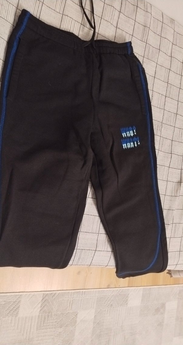 Siyah renk, elastik bel bantlı, yan çizgili erkek eşofman altı. Yumuşak ve sıcak kumaştan, rahat kesim normcore tarzda.