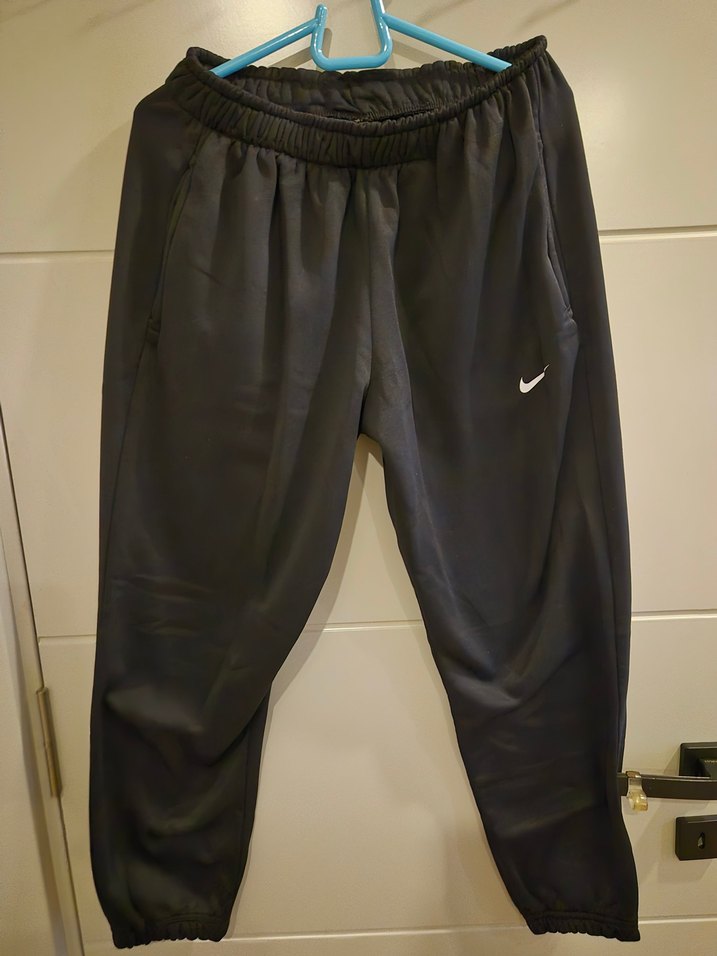 Rahat kesim, siyah renkte, sentetik kumaştan yapılmış, lastikli bel ve yan cepli eşofman altı. Trendy casual sokak stili için uygun, desensiz tasarım. defoları vardır.