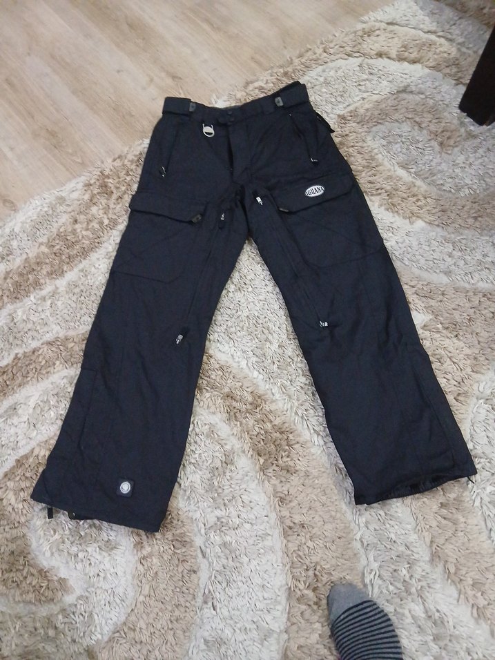 Siyah renkli, rahat kesim ve kemerli erkek kayak pantolonu. Yumuşak ve sıcak tutan kumaştan, dış mekan için uygun, normal boyda.
