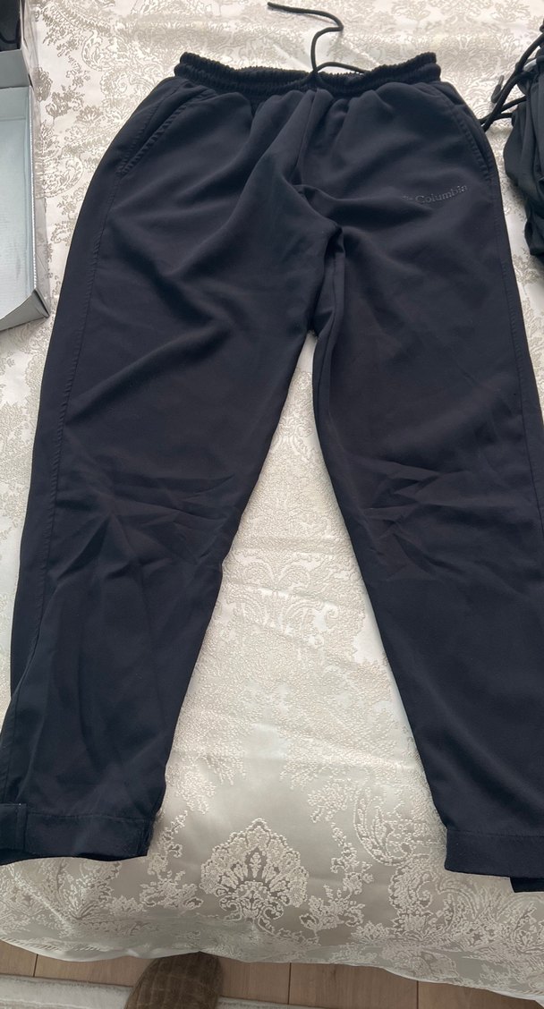 Erkekler için siyah, rahat kesim midi uzunlukta, yumuşak sentetik kumaştan yapılmış pantolon, günlük kullanıma uygun zahmetsiz şıklık sunar.