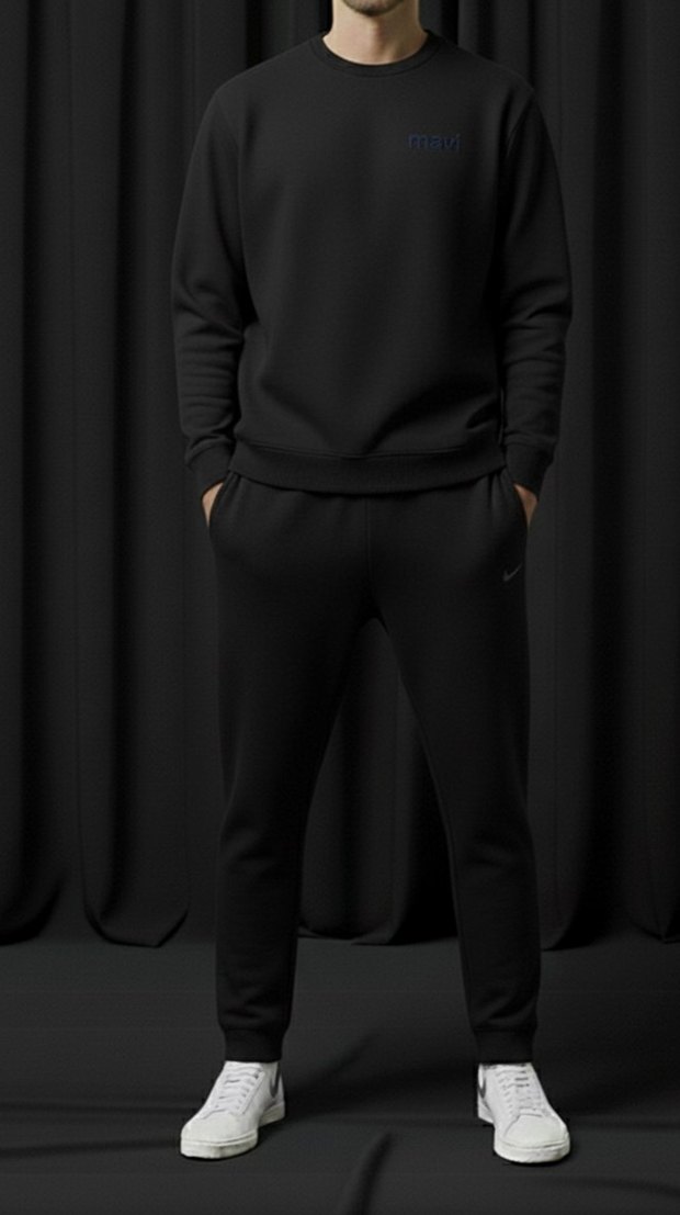 Erkek Siyah Regular Fit ayağı lastikli eşofman