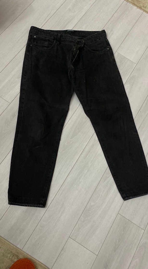 Erkekler için siyah denim pantolon, regular fit ve normal boyda. Minimalist ve desen içermeyen tasarımıyla günlük kullanıma uygun, zahmetsiz şıklık sunar.