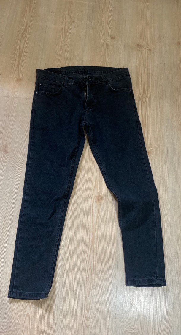 Siyah renkli, regular fit kesime sahip erkek kot pantolon. günlük kullanım için rahat ve şık bir sokak stili sunar.