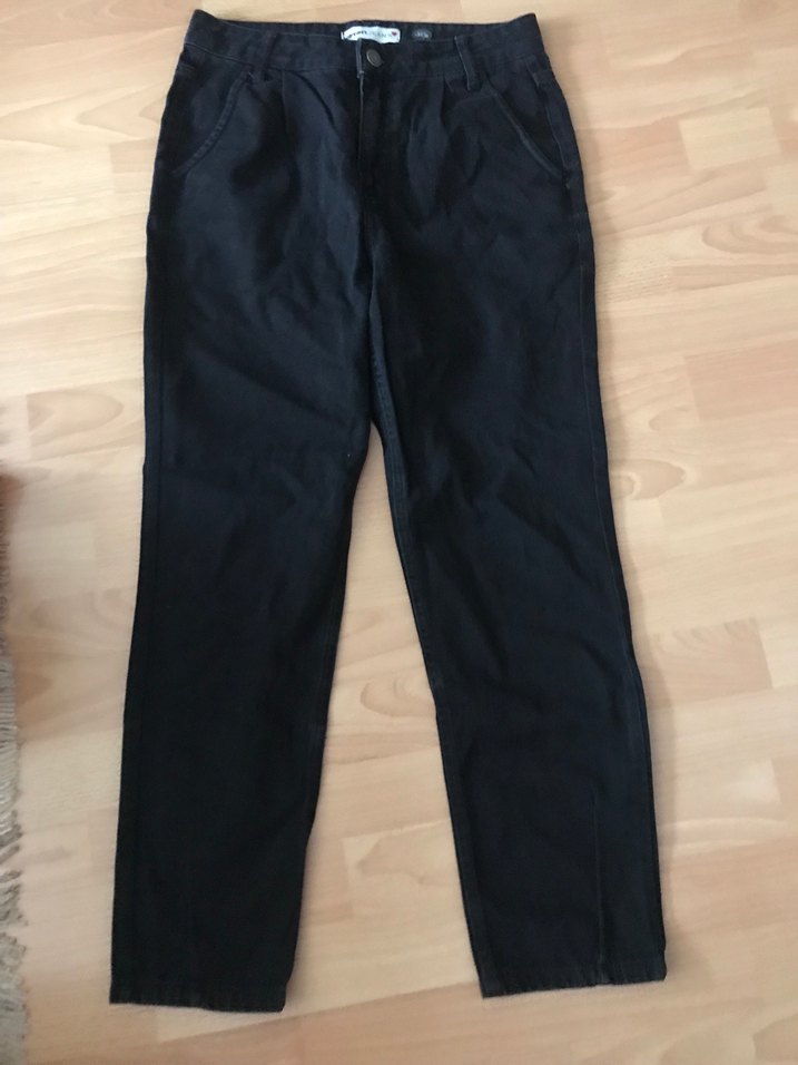 Siyah renkli, regular fit ve normal boyda bayan denim pantolon. Günlük kullanıma uygun, sade ve rahat bir tasarıma sahiptir.