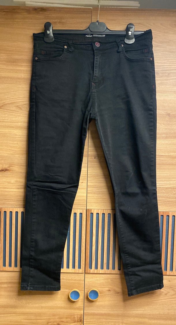 Erkekler için siyah denim pantolon, regular fit ve normal boyda, gündelik kullanıma uygun rahat ve şık bir tarz sunar.