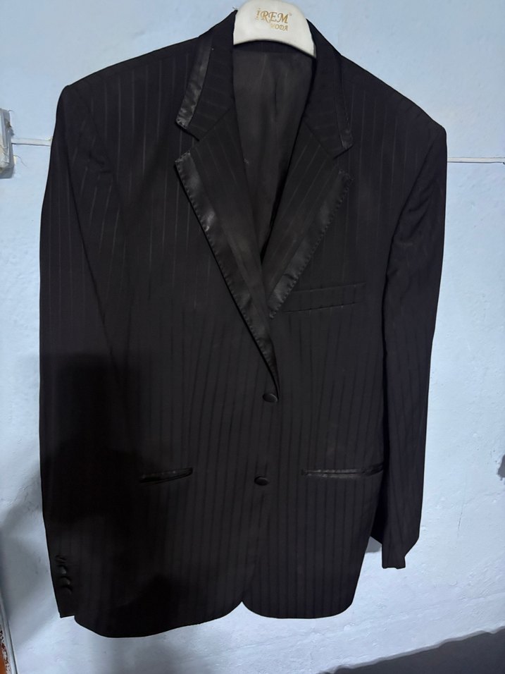 Erkek siyah ceket, notalı yaka ve düğmeli ön detayına sahiptir. Uzun kollu, regular fit olup ofis kullanımı için uygundur. Düz ve koyu renklidir.