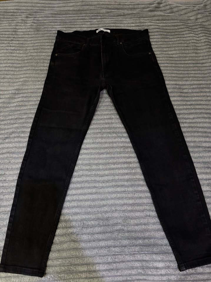 Siyah regular fit erkek kot pantolon, denim kumaştan, normal boyda, gündelik kullanıma uygun rahat ve şık bir tarz sunar.