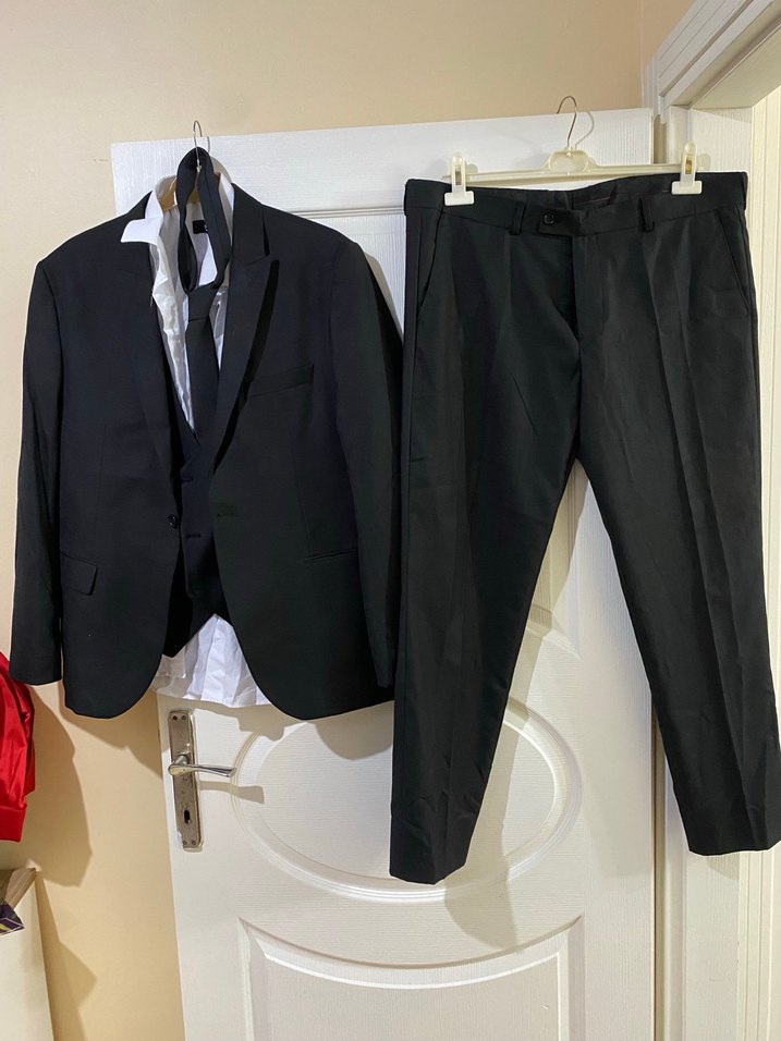 Erkek siyah takım elbise, regular fit kesime ve kesik yakaya sahiptir. Askılı kol tasarımı ile ofis için uygun, desen içermeyen şık bir görünüm sunar. İş stilini sokak modasıyla birleştirir, zahmetsiz şıklık sağlar. ️
