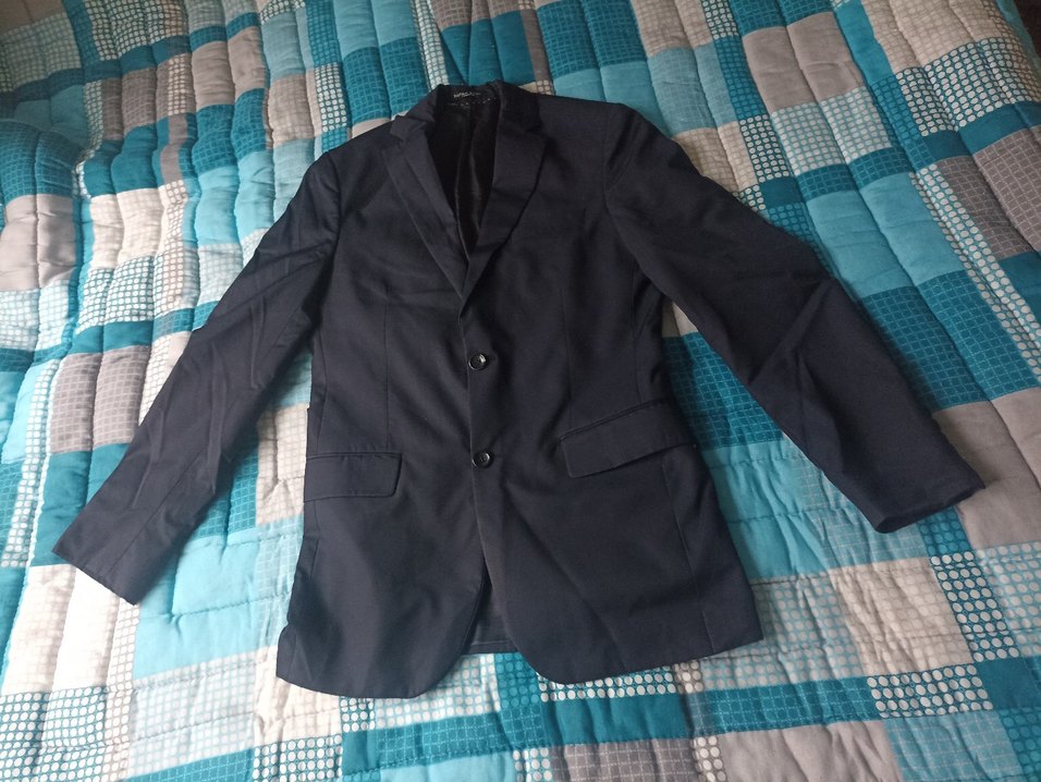 Siyah renkli, notched lapel yakalı ve düğmeli erkek takım elbise ceketi. Uzun kollu, regular fit ve ofis kullanımı için uygun klasik tarzda.