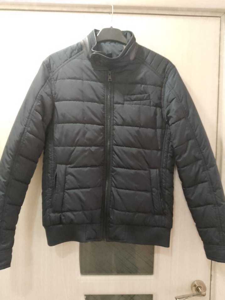 Siyah renkte, sentetik kumaştan yapılmış, fermuarlı, regular fit erkek mont. Uzun kollu ve bisiklet yaka, günlük sokak stili için uygun.fotograflarda gösterildiği gibi dolapta durmaktan yakasında ufak bir deform olmuştur
