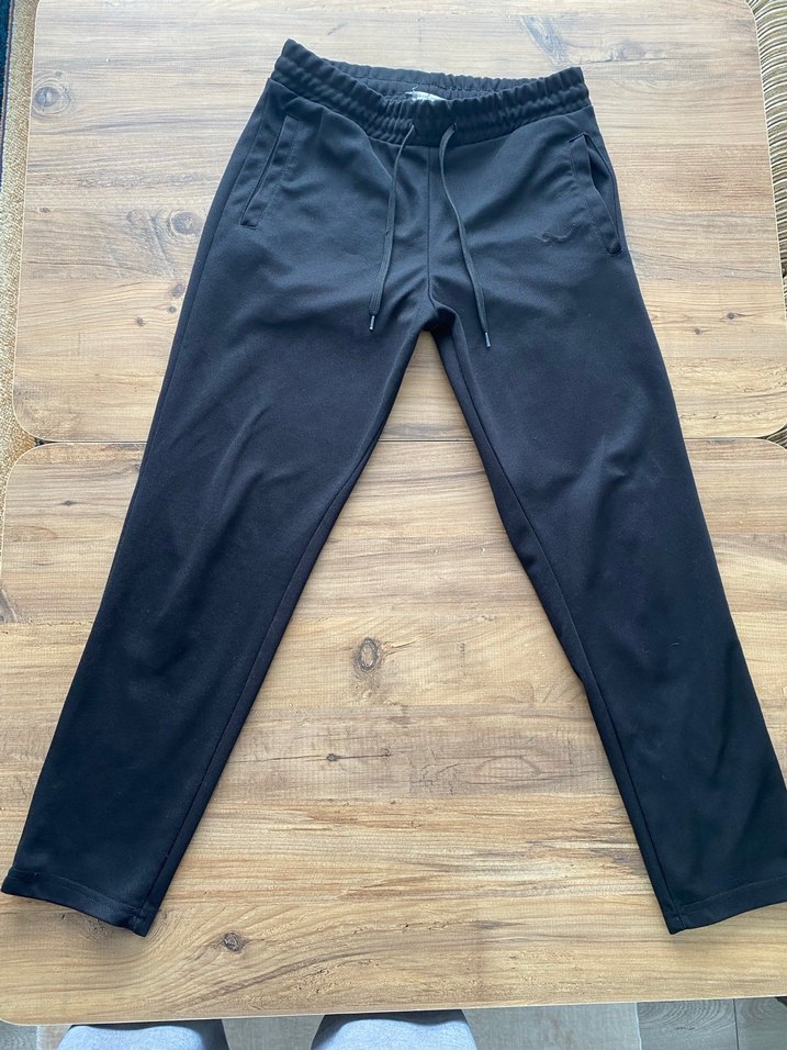 Erkekler için siyah regular fit spor pantolon, elastik bel ve bağcık detaylı, yumuşak sentetik kumaştan üretilmiş, günlük kullanım için uygundur.