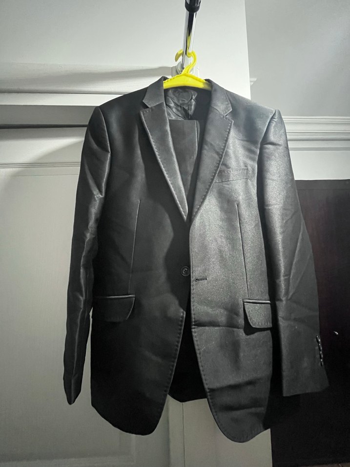 Bu siyah erkek takım ceketi, kesik yakalı, uzun kollu ve düğmeli ön yapıya sahiptir. Regular fit ve normal boydadır, ofis ve street wear tarzları için uygundur. ️2 adette kumaş pantolon bulunuyor hiç kullanılmadı