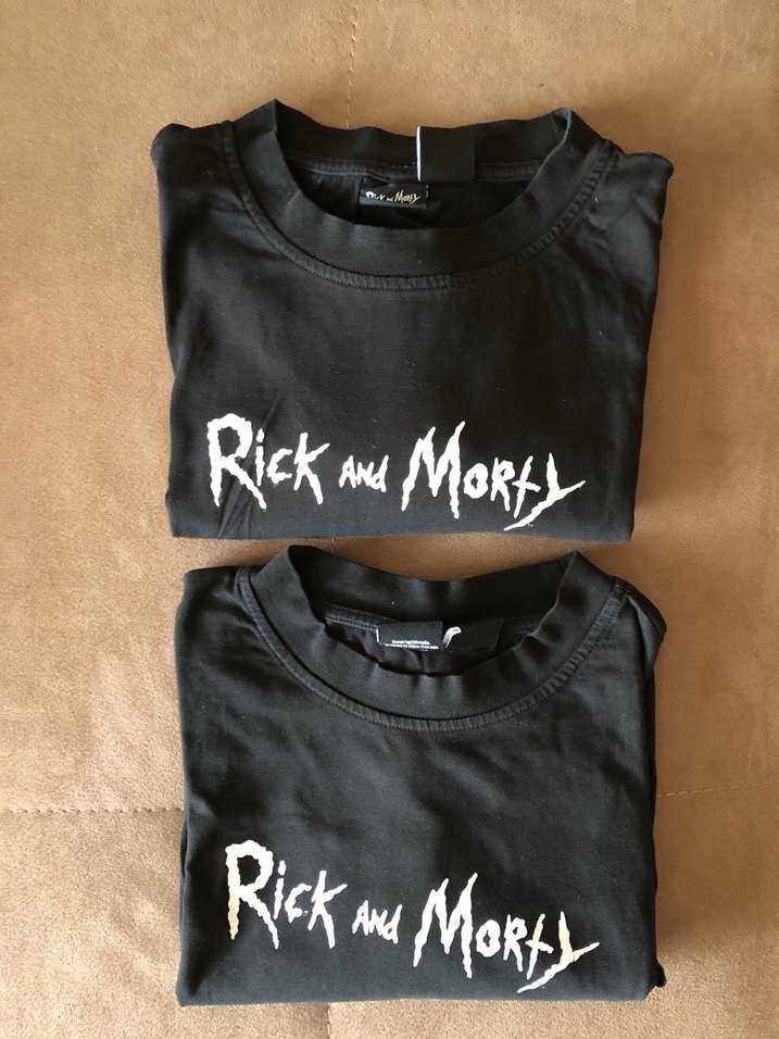 2 tişörtün fiyatıdır. Pamuk siyah erkek tişörtü, kısa kollu ve bol kesim. Üzerinde "Rick and Morty" baskısı ve yuvarlak yaka bulunur.