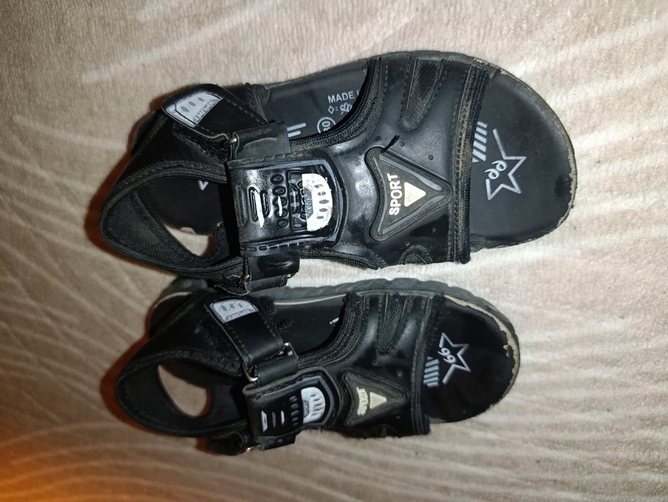 Siyah, baskılı koyu kauçuk malzemeden erkek terlik, cırt cırtlı kayış ve rock punk tarzında. "MADE" yazısı bulunur.