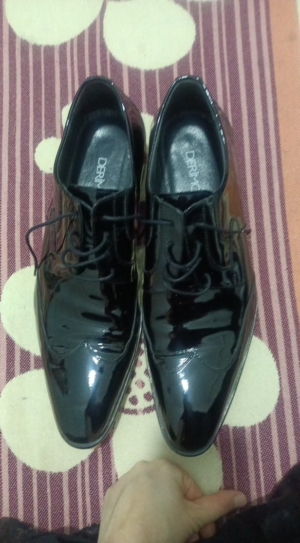 Ofis kullanımına uygun, siyah rugan parlak yüzeye sahip klasik erkek ayakkabısı. Düz ve geleneksel tasarıma sahiptir.