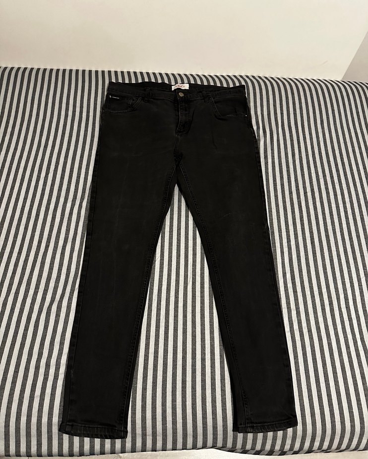 Siyah çizgili desenli, regular fit erkek kot pantolon. Günlük kullanıma uygun, rahat ve şık bir seçenek. 38/32 beden ama dar kesim.Lee cooper marka.Toplu alımda indirim yapabilirim. Bel 46 cm Paça 13 cm Boy 103 cm