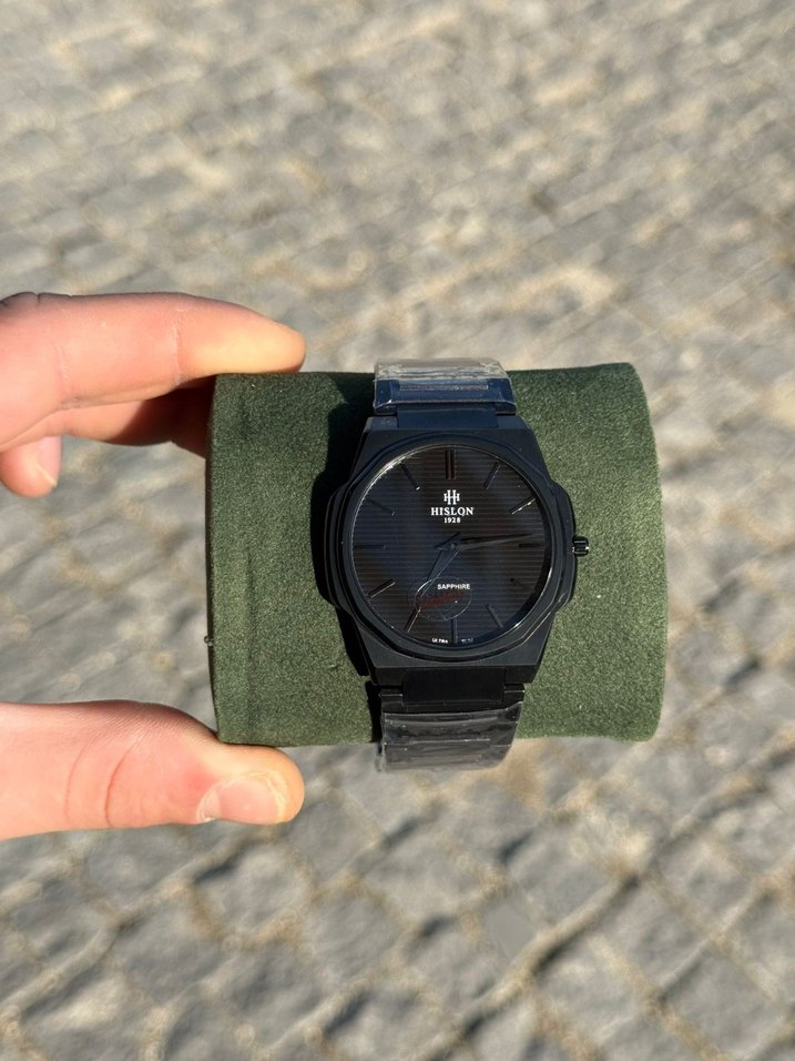 Erkekler için siyah renkli, safir camlı ve dayanıklı kayışa sahip sokak stili saat. ⌚