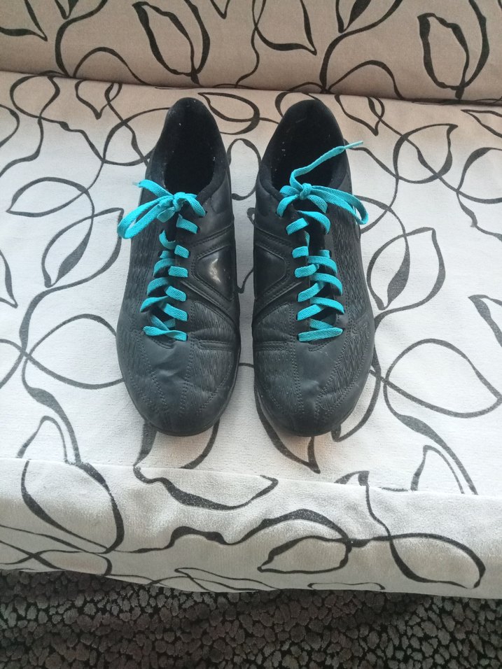 Erkekler için siyah futbol ayakkabısı, kauçuk tabanlı ve velcro özellikli. Spor ve sokak stiline uygun, desen içermeyen şık tasarım. Trendy ve rahat.