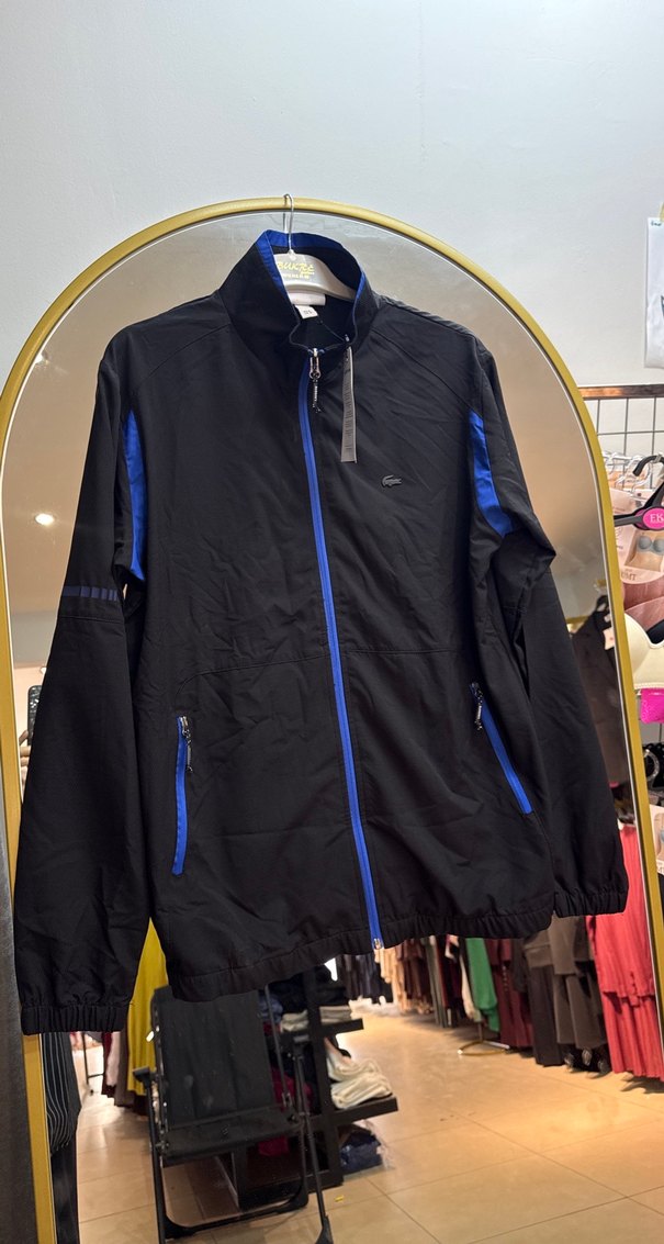 Erkekler için siyah renkte, yüksek yakalı, uzun kollu ve fermuarlı ceplere sahip spor tarzı yağmurluk. Regular fit ve sentetik kumaştan üretilmiştir.