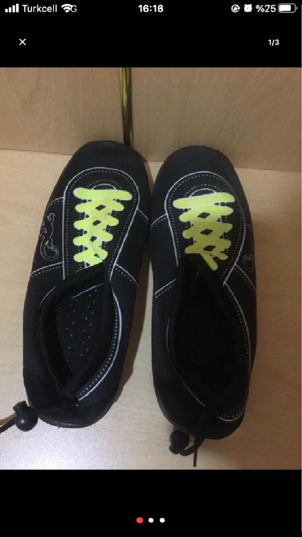 Erkekler için siyah renkli, kauçuk malzemeden yapılmış su ayakkabıları. Velcro bantlarla kolay ayarlanabilir, spor ve gündelik kullanıma uygun goth tarzında, neon sarı bağcık detaylı. ♂️hiç kullanılmadı yeni