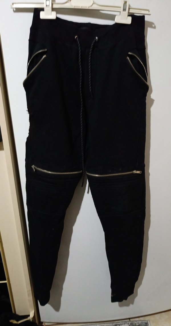 Siyah renkli, dar kesim erkek eşofman, süet kumaştan ve fermuarlı ceplerle tasarlanmıştır. Günlük kullanım için uygun, sokak modası tarzında.12,13 yaş