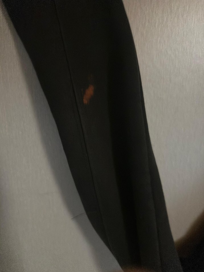uzun kesik detaylı, ince ve yumuşak kumaştan yapılmış siyah renkli kumaş pantolon. Ofis ortamına uygun, minimalist ve gotik stil.