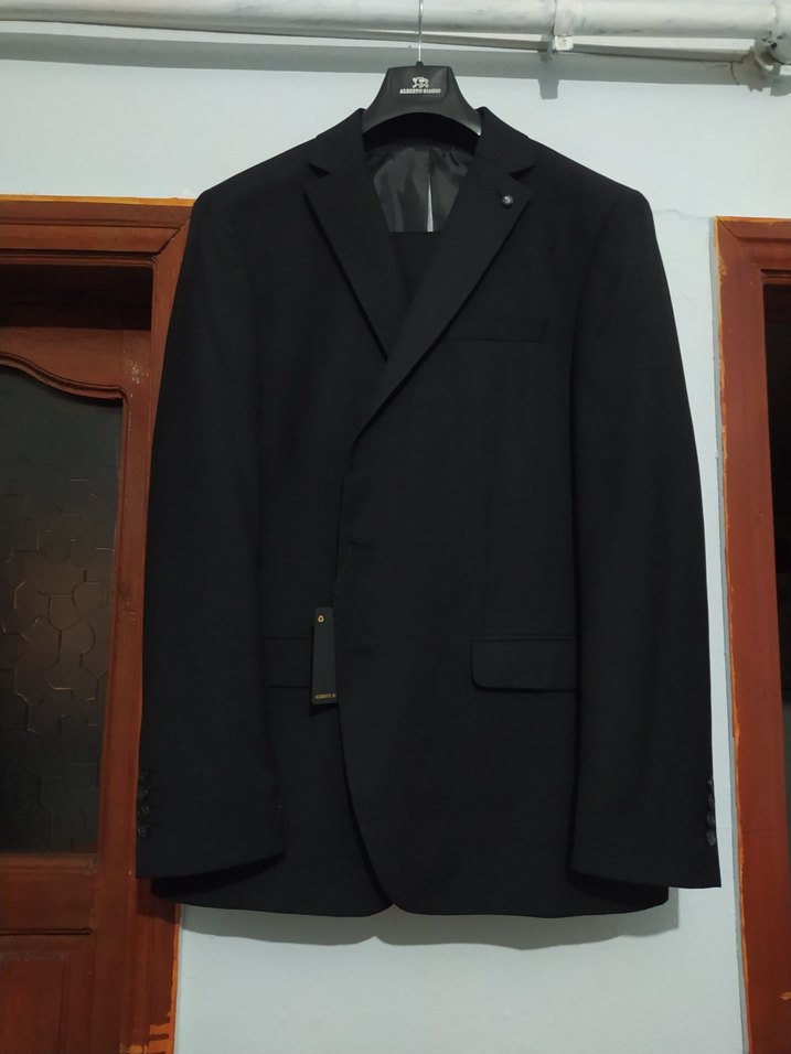 Erkekler için siyah takım elbise, klasik yaka ve düğmeli kapama ile normal kesim ve uzun kollu, ofis kullanımı için uygun. Desensiz, klasik iş tarzına uygundur. ️