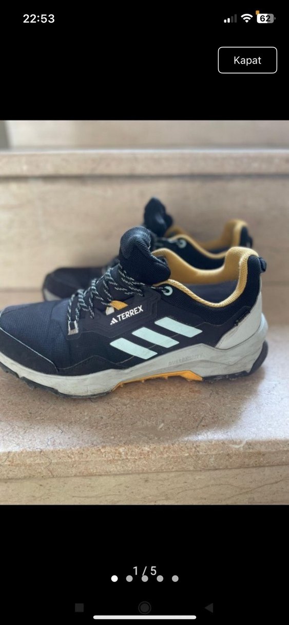 Siyah Terrex erkek outdoor ayakkabı, kauçuk taban, cırt cırtlı bağlama ve baskılı detaylarla sportif ve sokak stiline uygun.