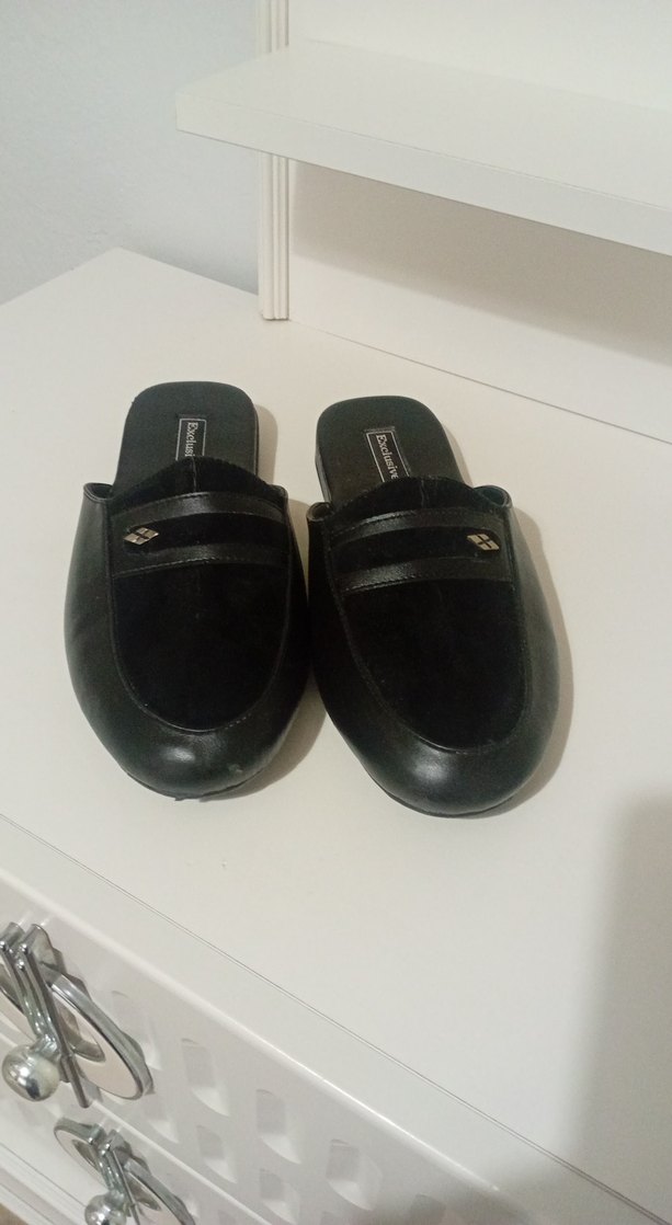 Erkekler için siyah, desensiz ev terlikleri, tokalı detaylı ve minimalist tarzda tasarlanmıştır. 1 kere giyildi sonra kaldırdım