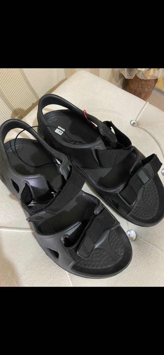 Siyah renkli, tokalı kayışlara sahip kauçuk erkek sandalet. Günlük kullanım ve athleisure tarzı için uygundur. erkek sandalet sıfır üründür 42 numaradır.