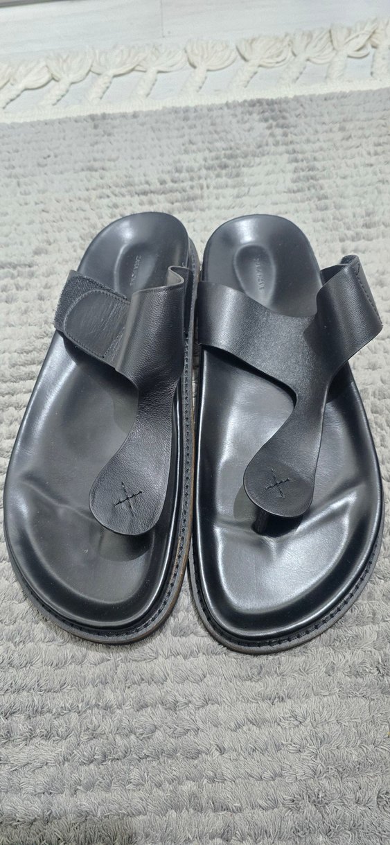 Siyah renkte, tokalı tasarıma sahip kauçuk erkek sandalet, sade ve minimalist tarzda, günlük kullanıma uygundur.