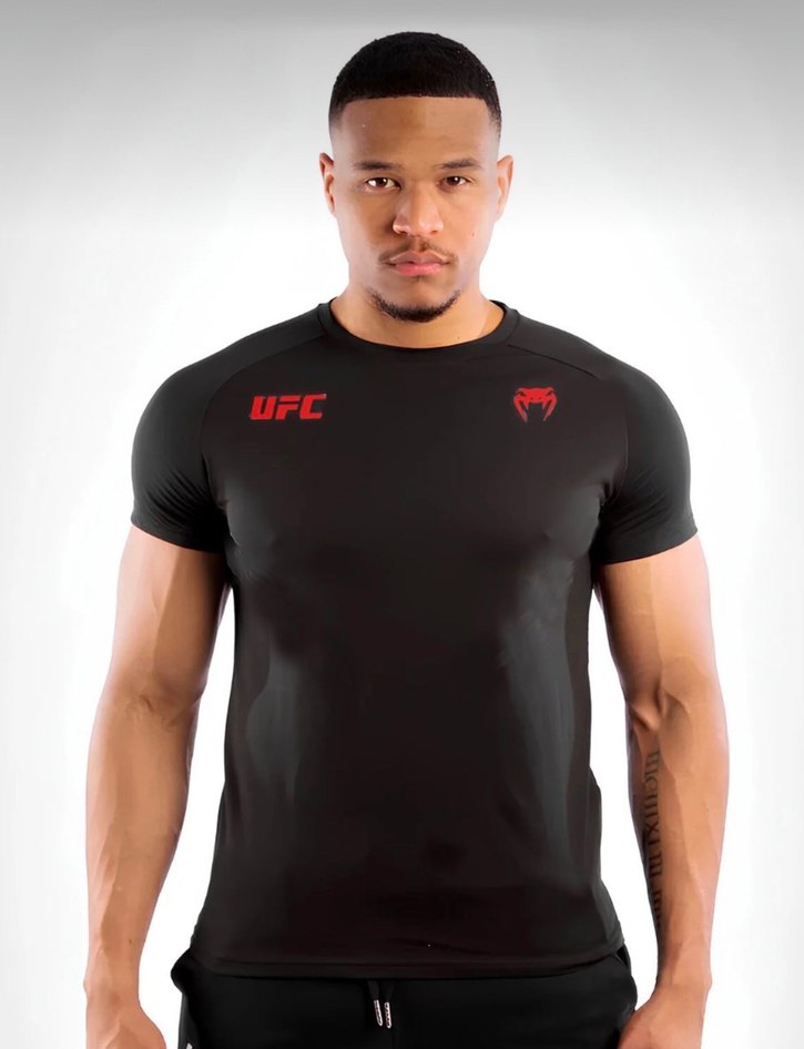 Dar kesim, kısa kollu erkek tişörtü, yuvarlak yaka ve koyu renkli sentetik kumaştan. Cesur UFC baskısı ile spor ve sokak stiline uygun. ️ iade yoktur ✅✅✅♂️