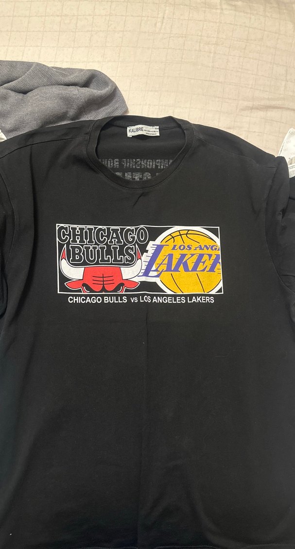 Pamuk kumaştan, uzun kollu ve bisiklet yaka siyah erkek tişört. Chicago Bulls ve Los Angeles Lakers baskılı, rahat ve bol kesim, sportif ve trend stil için uygun.