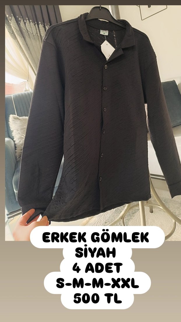 Siyah keten erkek gömlek, uzun kollu, düğmeli ve notlu yaka detaylıdır. Rahat kesim ve normal boyda, günlük sokak stili için uygundur.