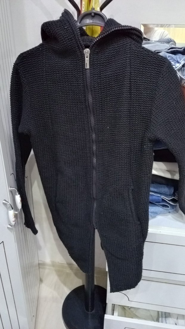 Erkek Siyah Uzun Kollu Örgü Hırka