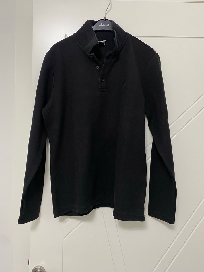 Siyah, uzun kollu erkek polo yaka