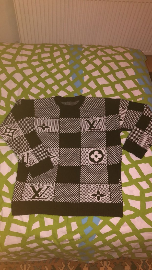 Erkekler için siyah uzun kollu, gevşek kesim ve yuvarlak yakalı triko kazak. Sentetik kumaştan örülmüş, koyu kareli desenlidir, günlük rahat kullanım için uygundur.