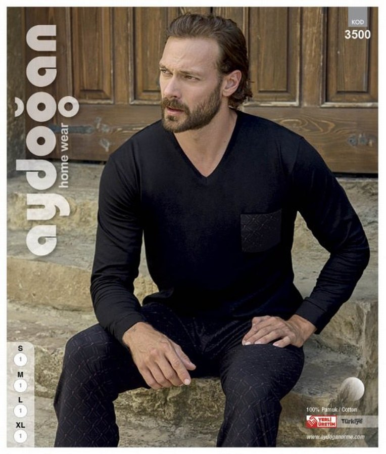 Erkek Siyah V Yaka Uzun Kollu Pijama Takımı
