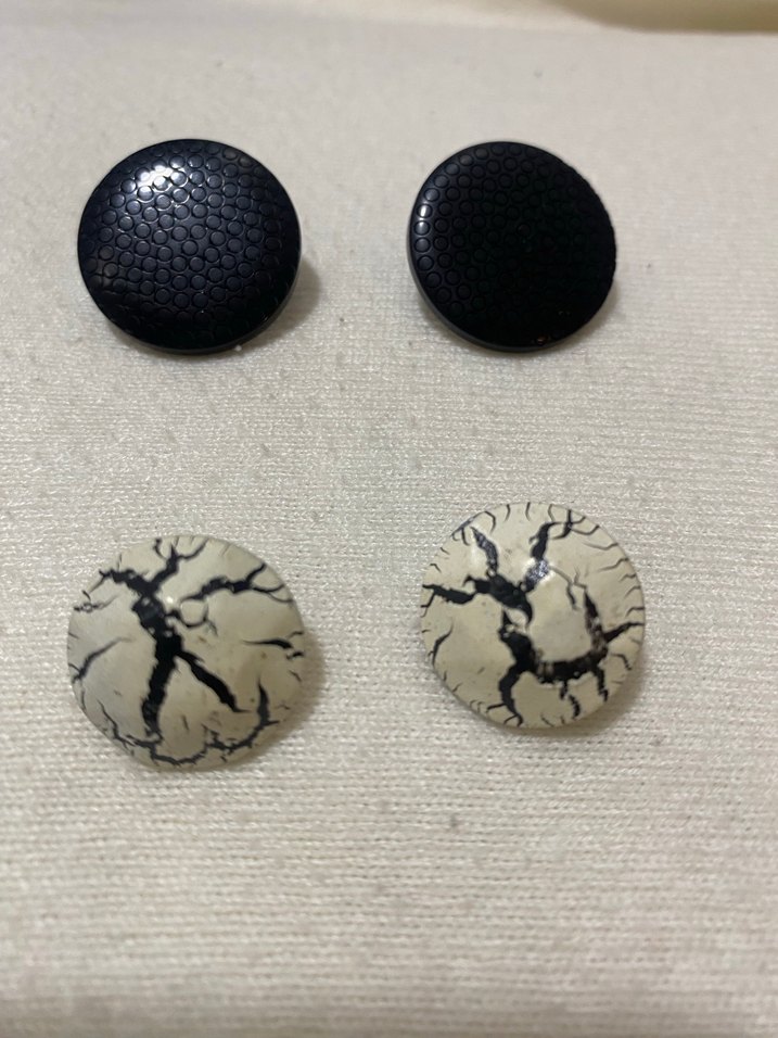 İkili fiyatıdır Siyah dokulu ve beyaz çatlak desenli erkek küpelerden oluşan gotik ve grunge punk tarzına uygun set.